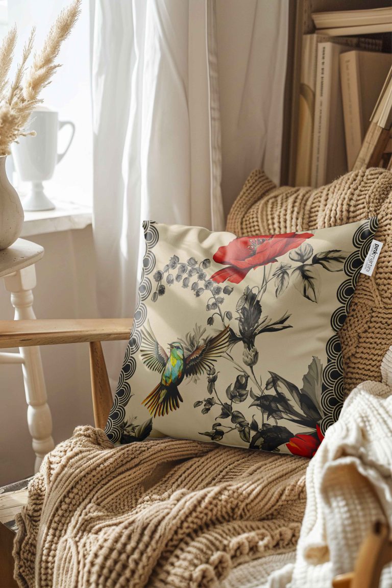 cuscino quadrato Colibrì panna 50X50 - PINK MARTINI
