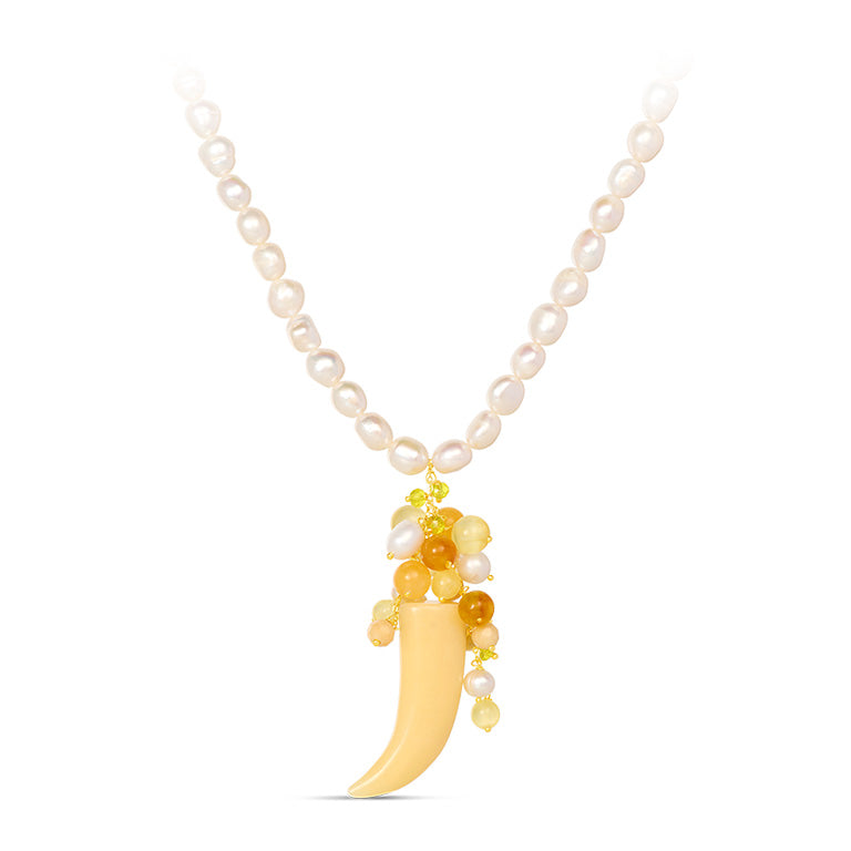 - Il corno bianco in agata bianca evoca purezza e nuove possibilità.