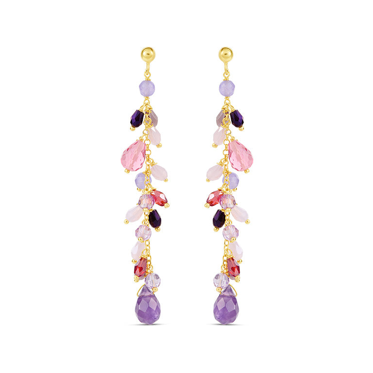 Argento 925‰, placcatura oro giallo, giada viola e giada liscia lilla con